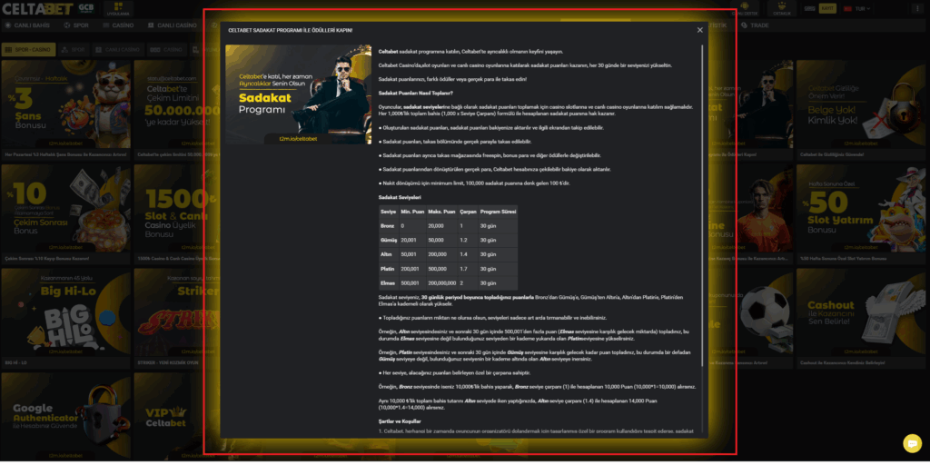 Celtabet sadakat programına katılın, Celtabet’te ayrıcalıklı olmanın keyfini yaşayın.